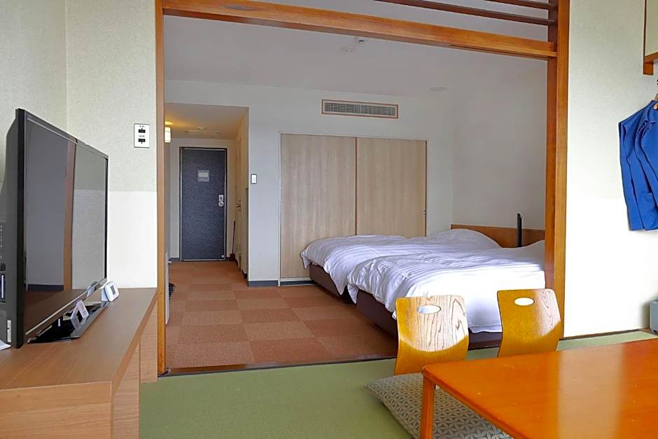 The spacious quadruple room features air conditioning, tatami, as well as a private bathroom boasting a bath and a shower. The quadruple room offers a safe deposit box, a carpeted floor, heating, a flat-screen TV, as well as sea views. The unit has 2 beds and 2 futons.